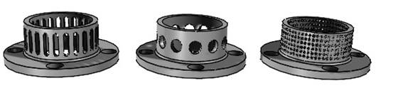 b、大圓孔主要用于普通混合工藝中減小物料顆粒尺寸。頭內(nèi)圓形通孔使介質(zhì)更好地作環(huán)形運(yùn)動(dòng),適用于中等粘度物料的大循環(huán)。